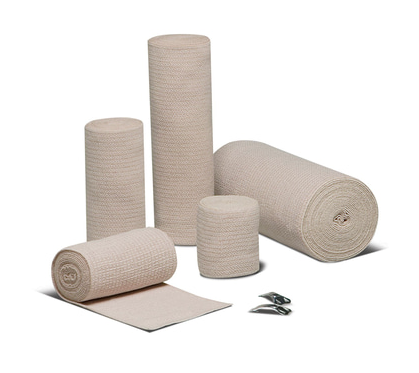 Standard elastic bandages with clips. Not made with natural rubber latex.